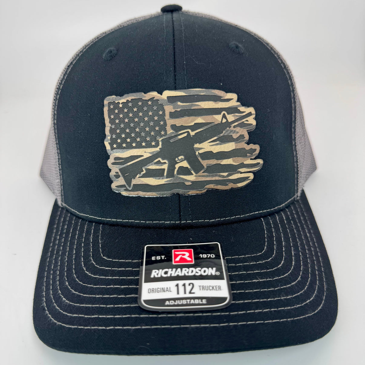 Richardson 112 Hat – M16 Rifle & USA Flag Camo Patch
